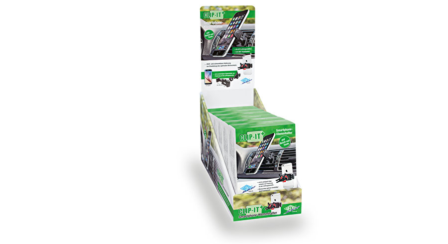 The smart holder for all 4 "- 6.0" smartphones with free adjustable viewing angle thanks to a 360 °- ball joint! Quick to install - the rubber plug with toggle switch is adjustable in 2 steps (1.5 - 2.5 mm - 2.5 mm and 3.5) depending on the thickness of the ventilation louvers, and therefore ensuring a safe and stable fixation of the smartphone holder. By pressing the soft touch brackets with the ratchet mechanism the smartphone is securely fixed. By pressing the quick release button, the clamps can be unlocked and the smartphone can be removed quickly and easily. The CLIP-IT plus securely holds every smartphone with a width of 5.5 - 8.5 cm. All functions of the smartphone are freely accessible. Size: 73 mm width x 91 mm length. Colour: black.