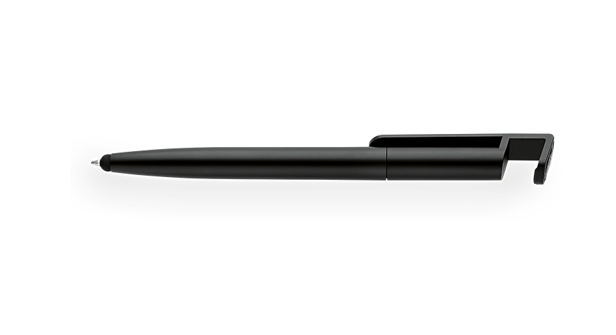 The new Touch Pen TRIPLE not only navigates writes, but also works as a smart phone holder and can be set up on all plain surfaces. That way you have the display always in view or can watch photos or movie clips together with friends. The soft rubber tip navigates on all touch screens and the refill is extended by twist mechanism. Fitted with a blue Parker style big capacity plastic refill. Length: approx. 14,7 cm.